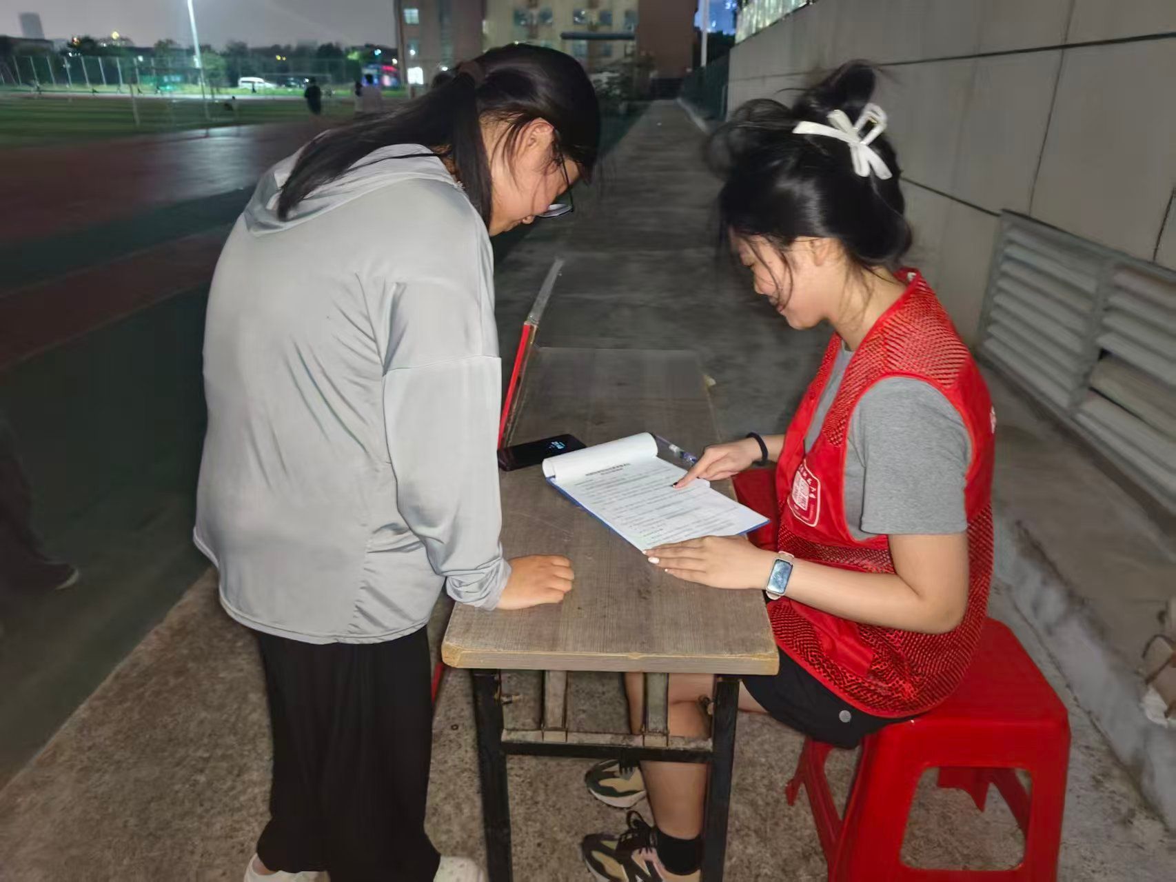 活动中,我院学子秉持“文明引导、依规劝诫”原则,既守住规则底线,又传递服务温度。他们分批值守,身穿志愿马甲,在每日校园跑时段,或于服务点解答APP使用疑惑,或在跑道间劝阻违规行为,以专业与负责维护运动秩序,成为校园跑场上一道亮眼的文明风景线。活动结束后,参与志愿巡查的学生们纷纷表示,在服务过程中不仅锻炼了自身的沟通协调能力,更深刻体会到规则与奉献的意义。