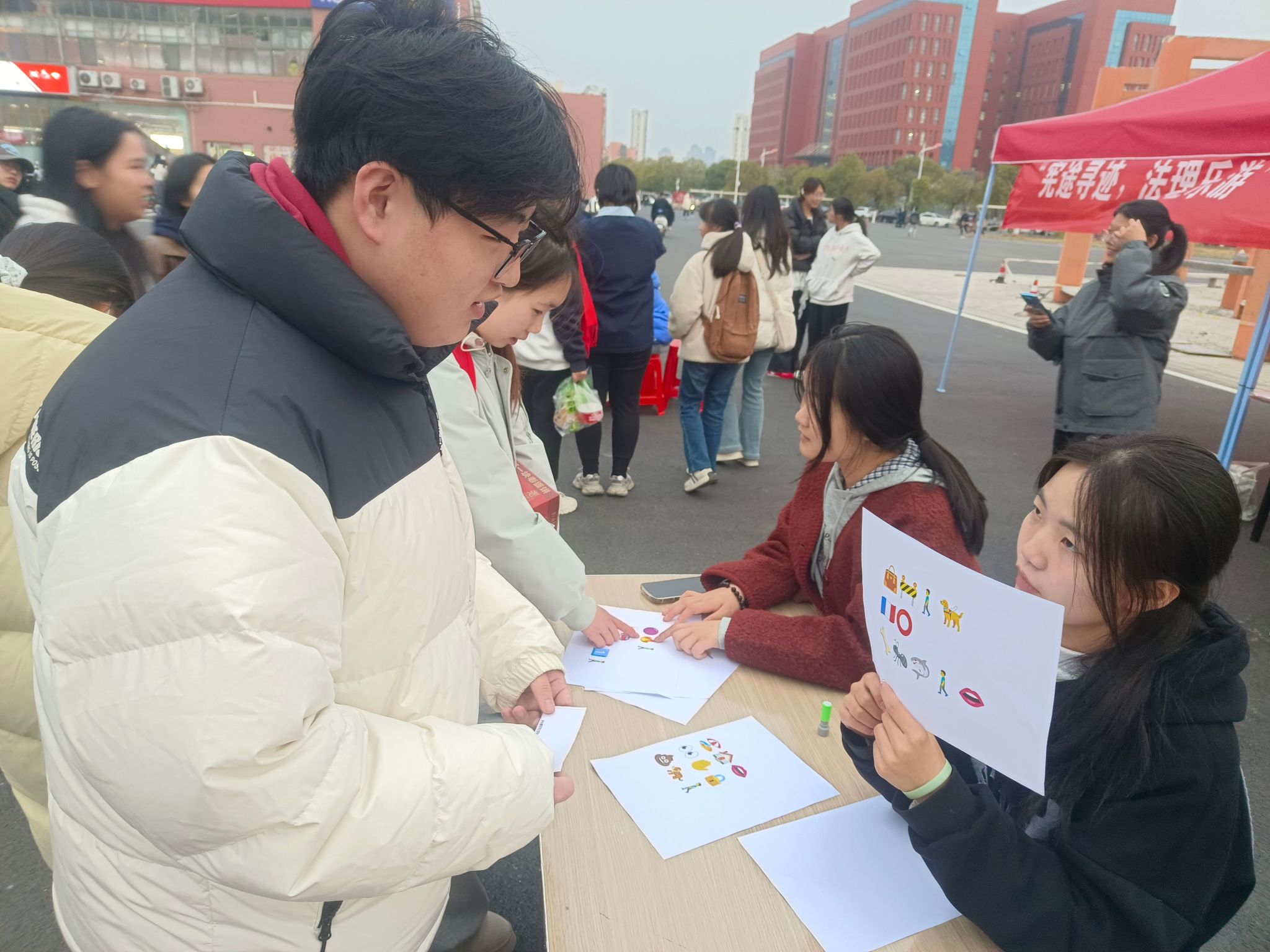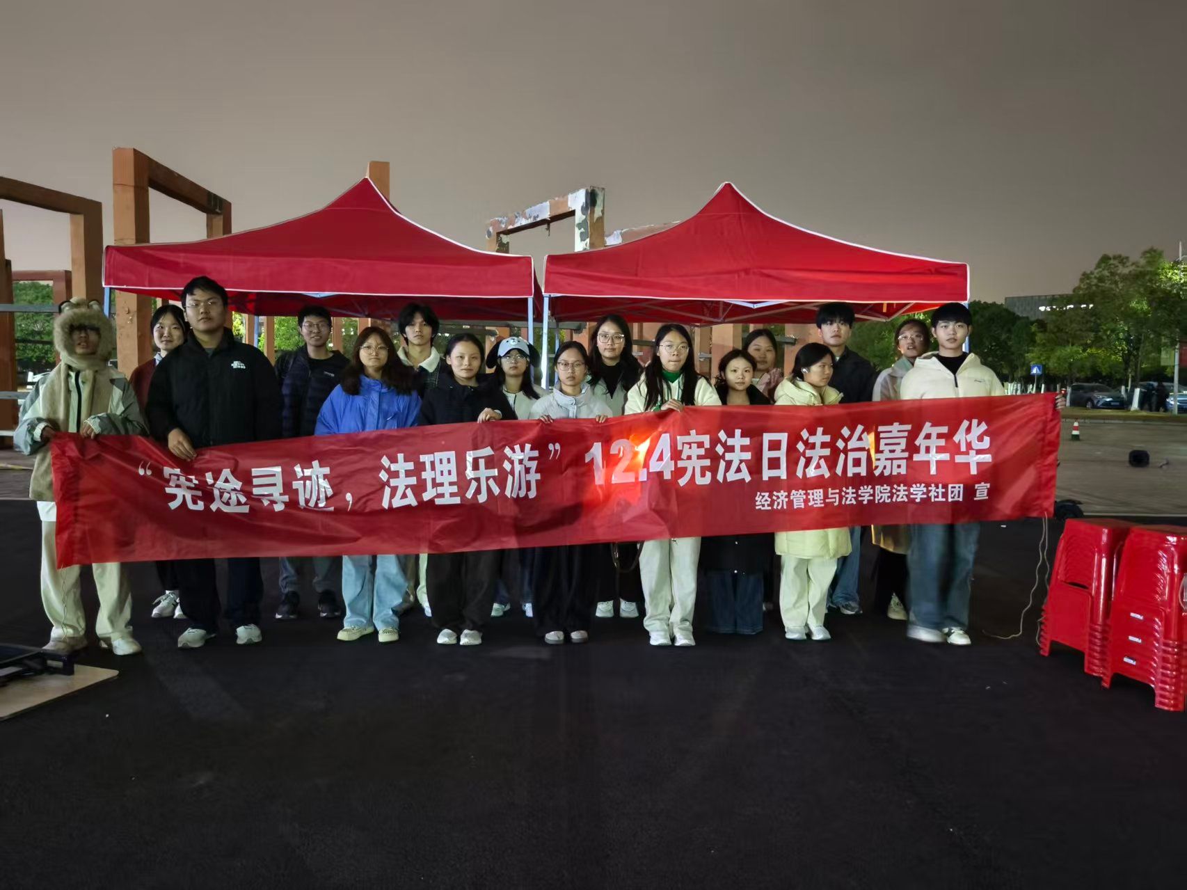 2025年12月4日第十二个宪法日当天下午,由共青团江西科技师范大学委员会主办,经济管理与法学院法学社团承办的“宪途寻迹,法理乐游”12·4宪法日法治嘉年华活动在西区食堂文化长廊圆满举办。这场以趣味互动为特色的普法活动吸引了数百名学生参与,让宪法知识在轻松的游戏氛围中深入人心。