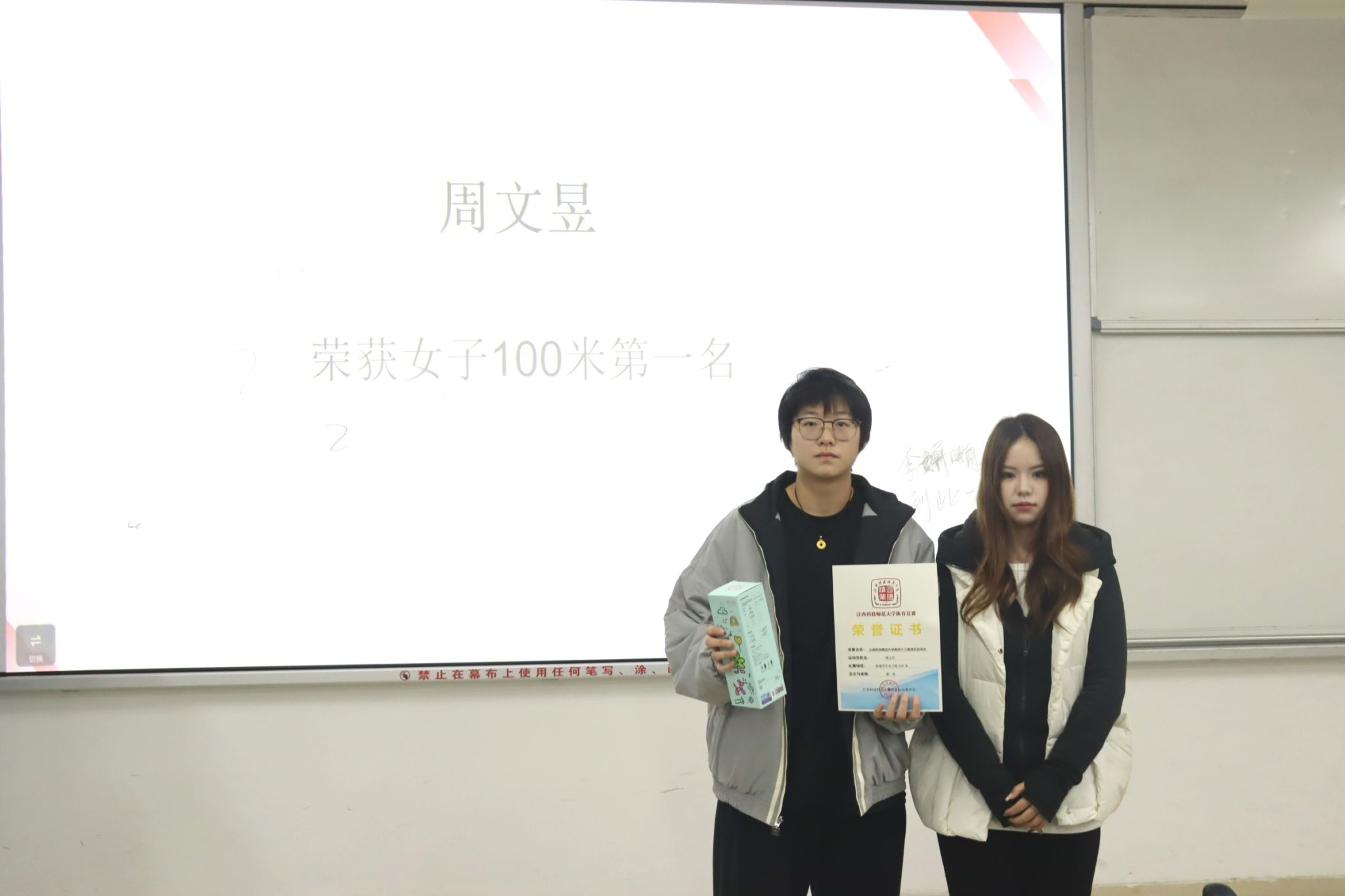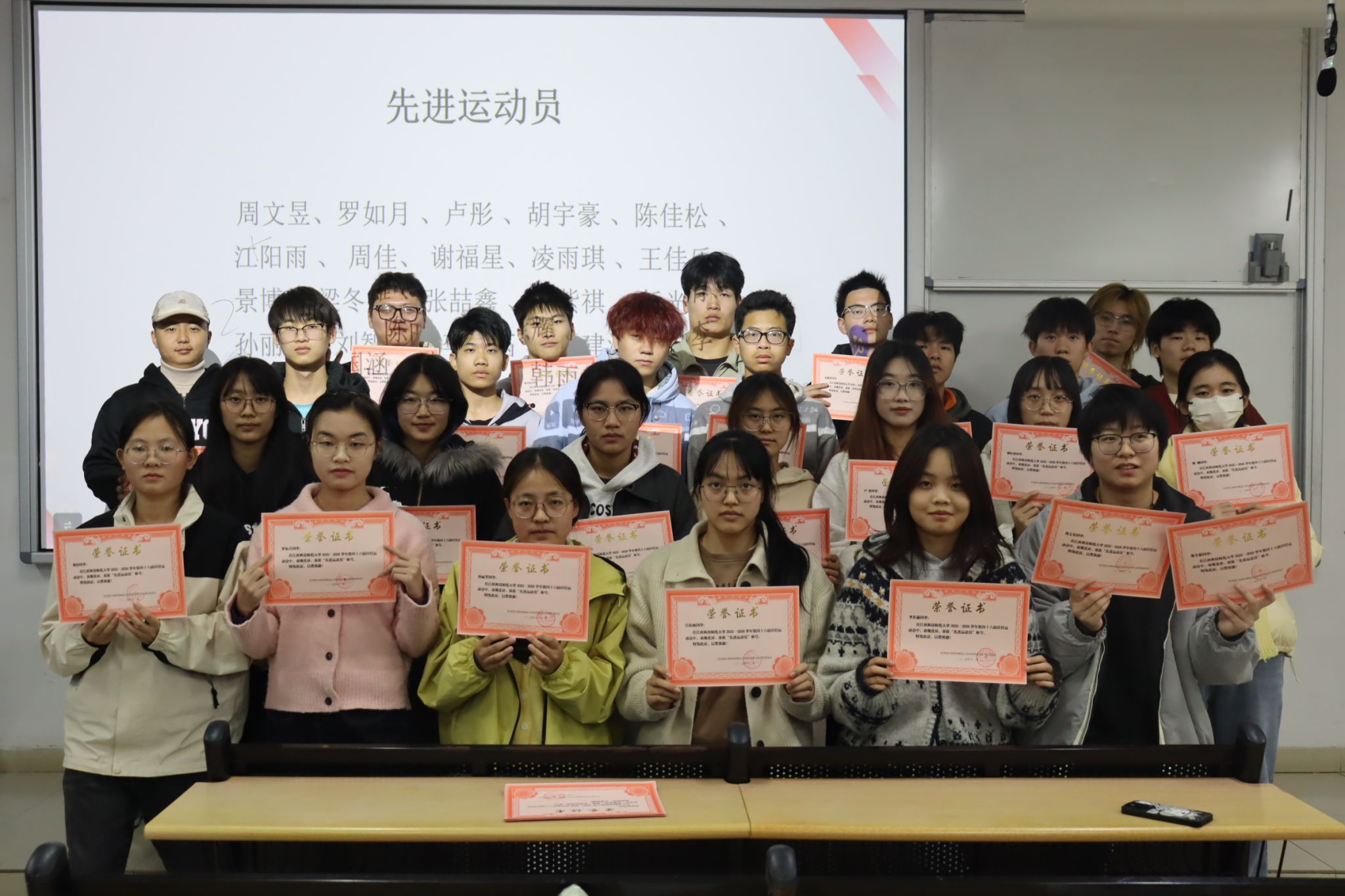 学院学生会主席团成员依次为获奖同学颁发荣誉证书。颁奖过程中,获奖同学依次上台接过证书。握手致意之间,传递的是对每一位参与者真诚的肯定与鼓励。随后,获奖者与颁奖嘉宾合影留念,镜头定格了此刻的荣誉,也留存了这一段团结奋进的回忆。