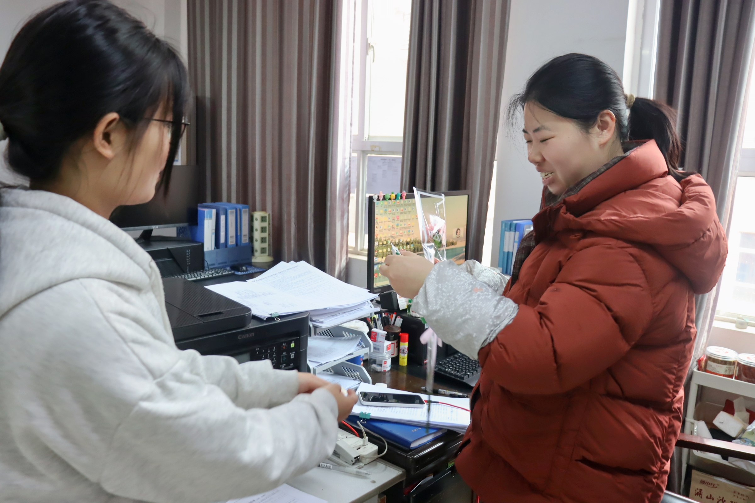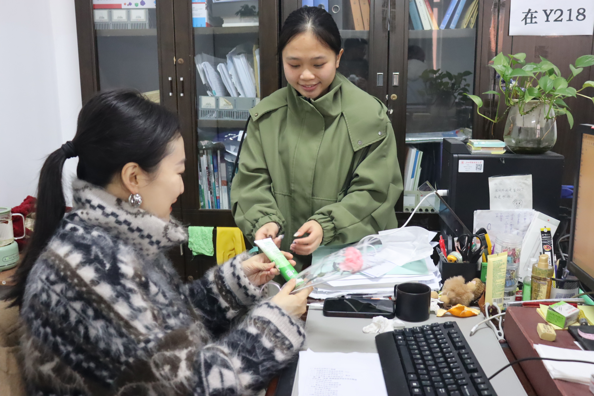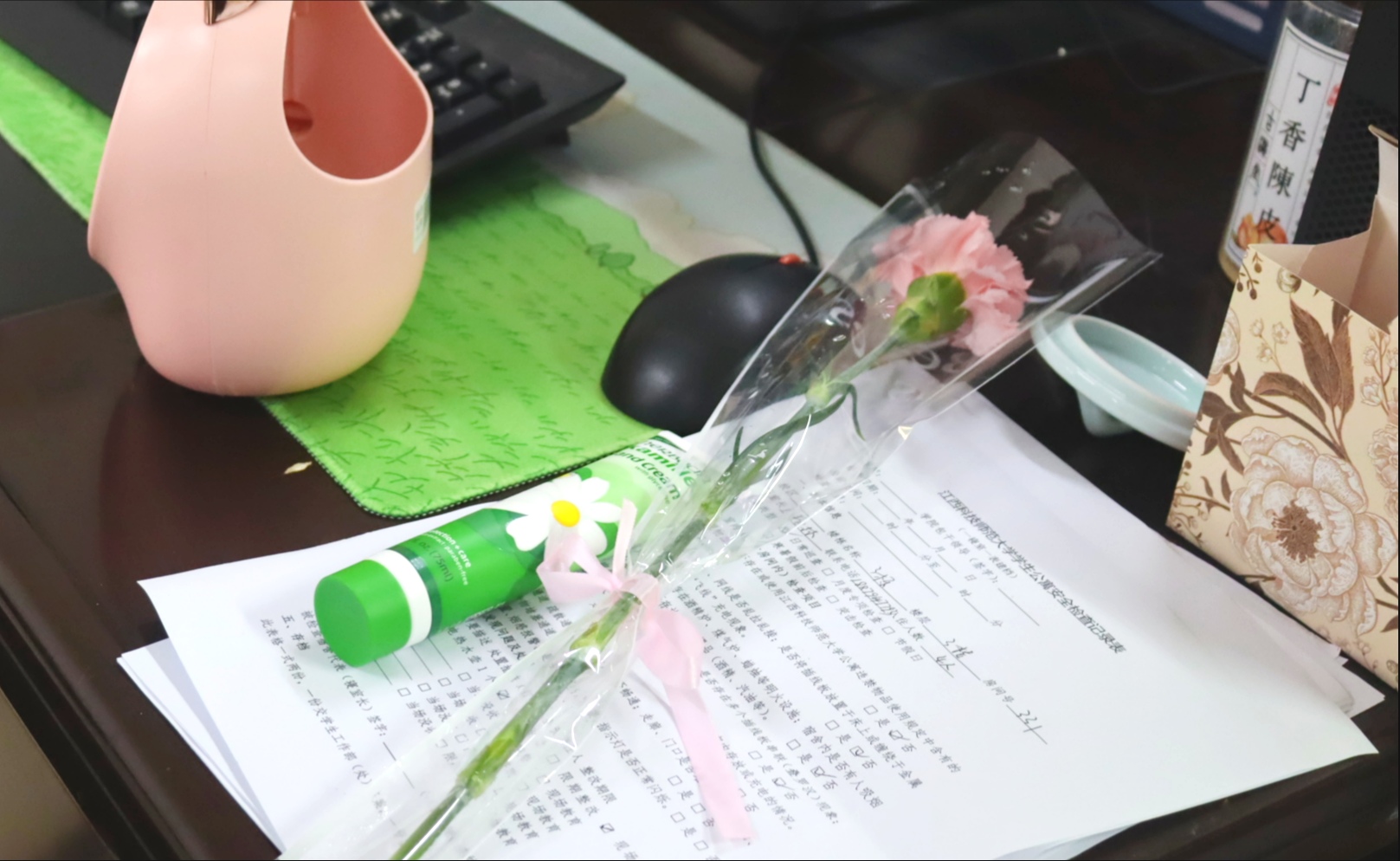 办公室里,老师们将鲜花轻轻摆放在案头,原本堆满文件的办公桌瞬间多了几分春色。有老师笑言,这是“这个春天收到的最温柔的问侯”。这份芬芳的礼物,也让“育人”工作增添了几分浪漫与坚守。