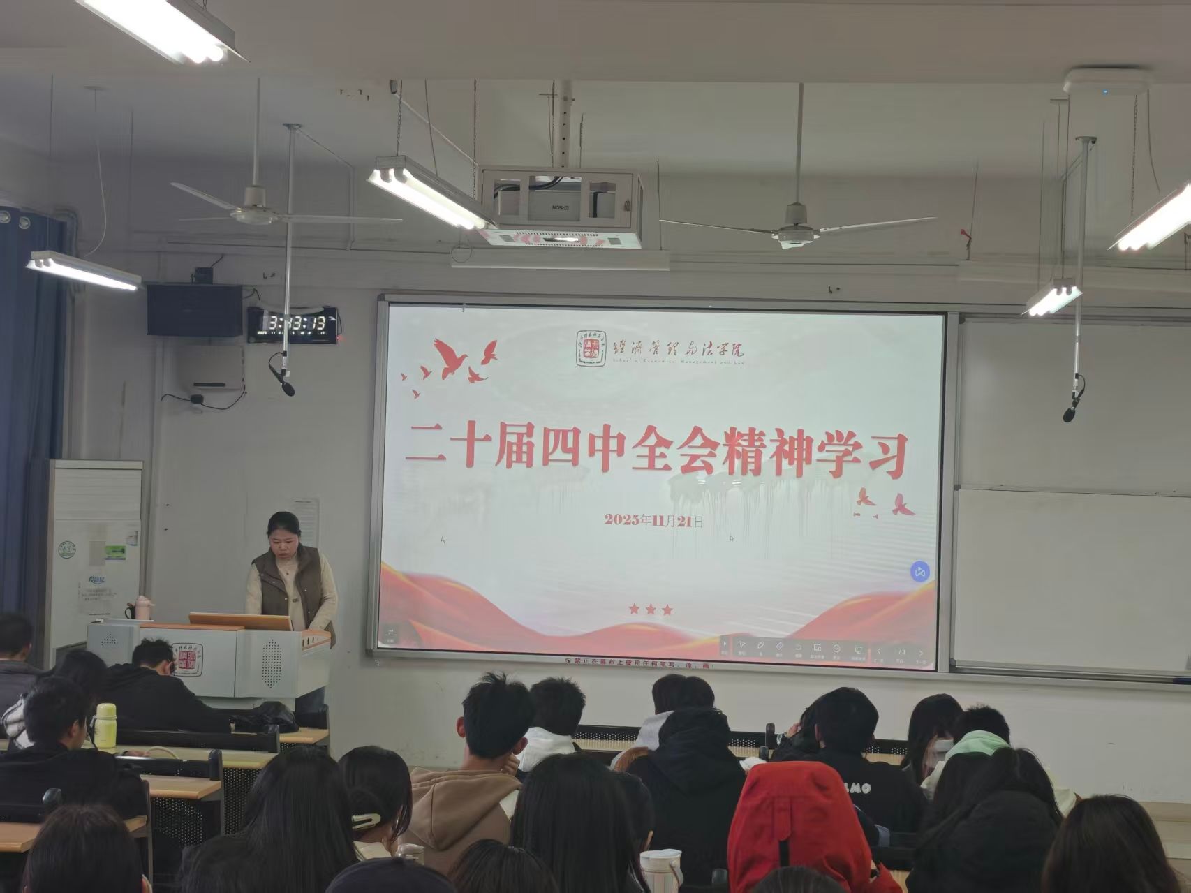 为深入学习宣传贯彻党的二十届四中全会精神,凝聚奋进共识,汇聚发展合力,经济管理与法学院于2025年11月中旬起,系统策划并启动了一系列层次分明、形式创新的专题学习活动,在院内迅速掀起学思践悟的热潮。