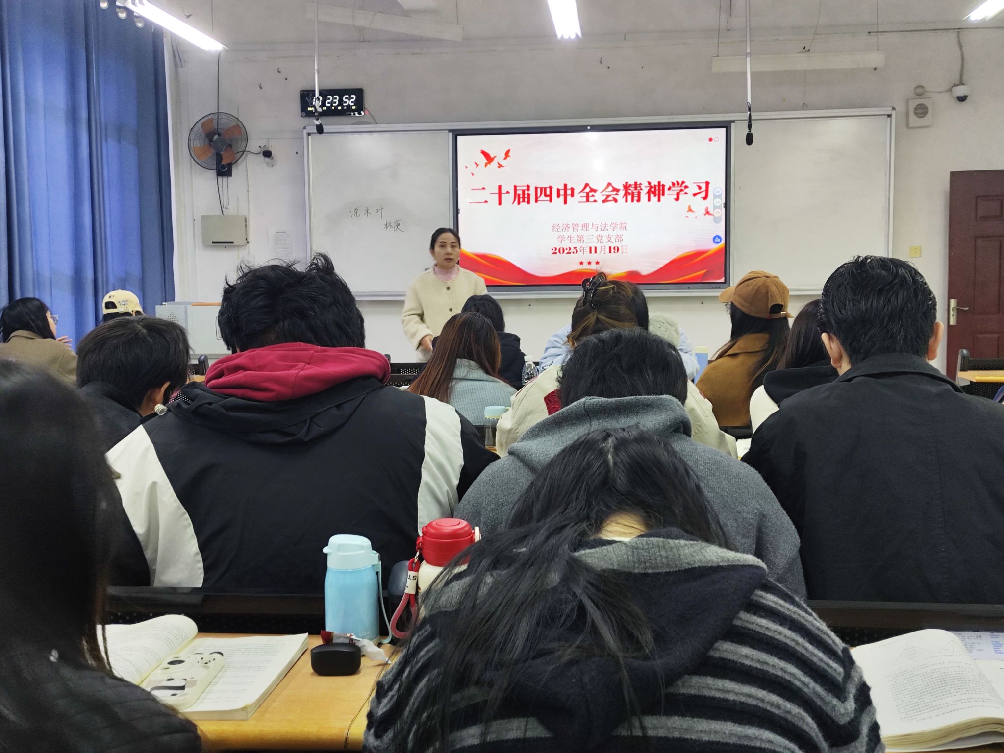 为促进理论学习在朋辈间的交流与启发,聂虹等辅导员深入班级和宿舍开展系列活动。他们围绕学业规划、班风建设等同学们共同关心的话题,组织学生骨干结合自身理解,用青年视角和身边案例分享对全会精神的认识。活动中,同学们通过小组讨论、经验交流、案例分析等多种形式,在轻松自然的氛围中相互学习、共同提高,形成了互帮互学的良好氛围。