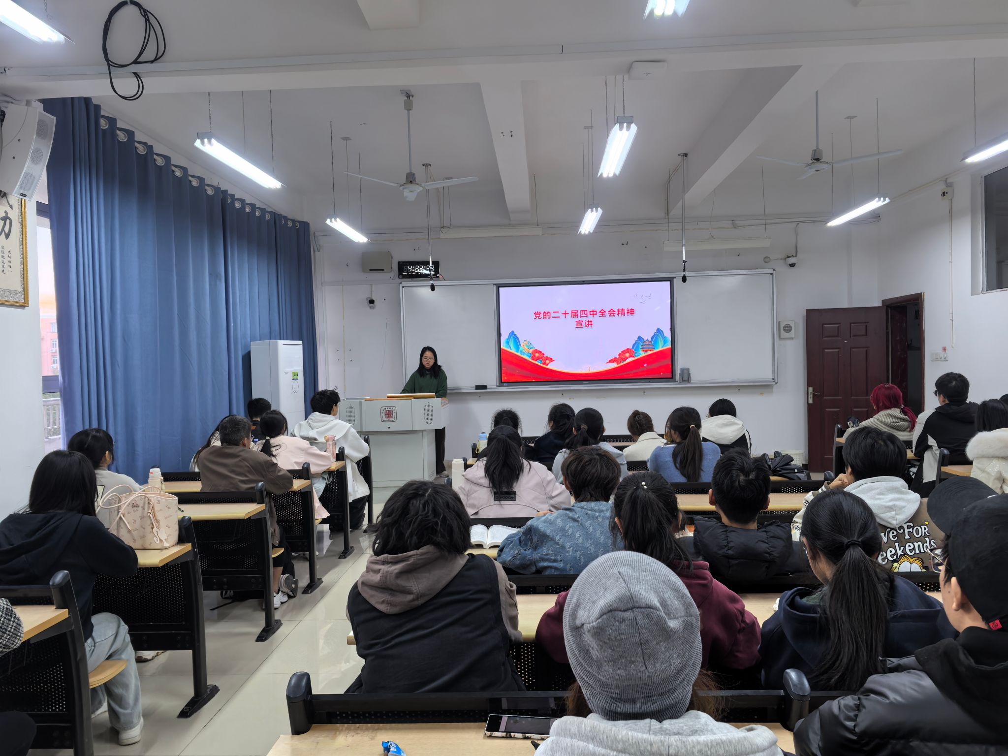 系列活动以学院党委率先引领为先导。学院党委副书记万康同志面向全体辅导员作首场专题宣讲,从全局高度系统阐释了党的二十届四中全会的核心要义与战略部署。他要求思想政治工作队伍必须先学一步、学深一层,深刻领会精神实质,并切实将理论学习成果转化为育人实效,不断夯实学生工作根基,为全院学习贯彻活动奠定了扎实基础。