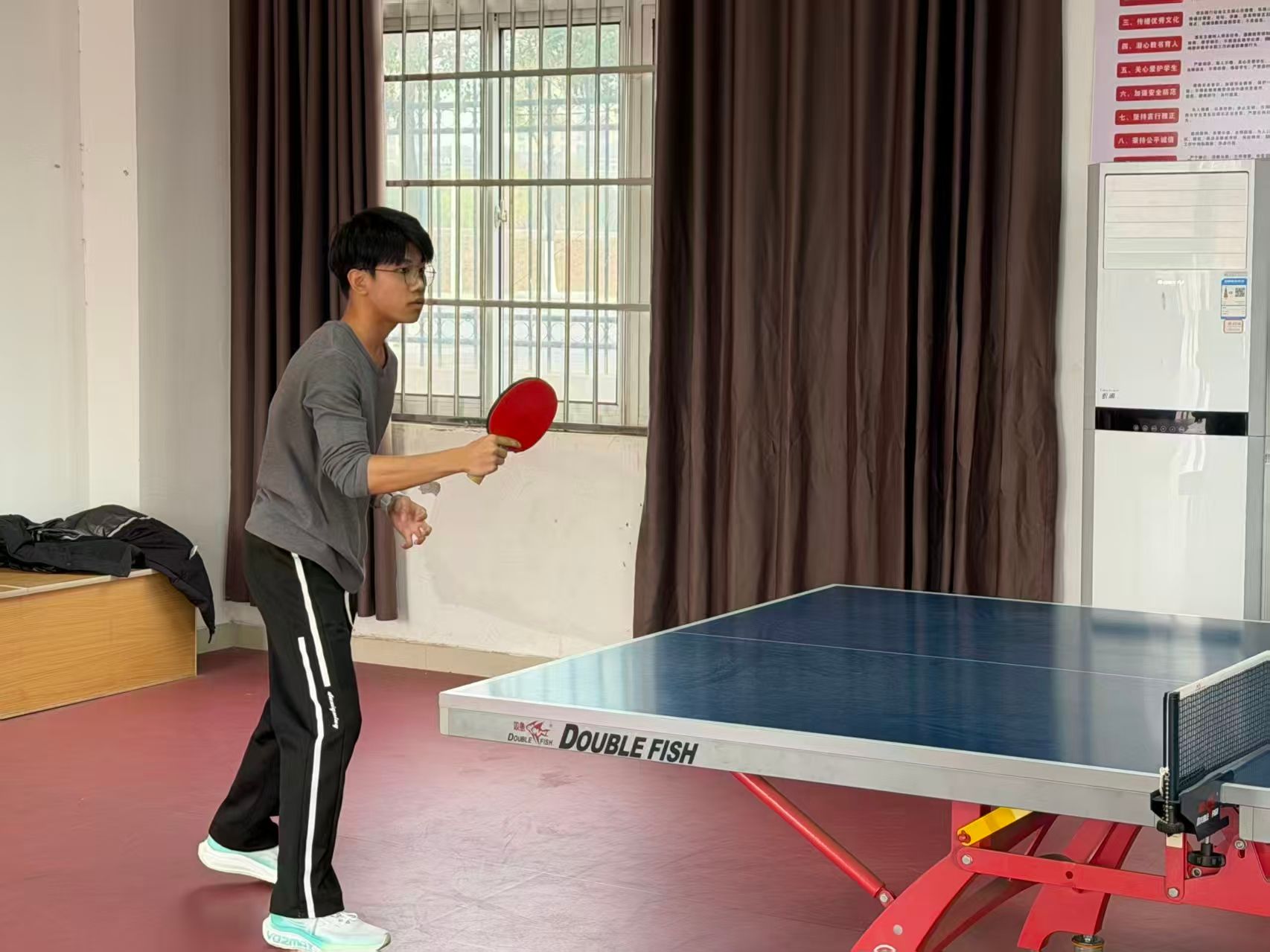 随着裁判一声哨响,各场次比赛依次展开。男单选手秉持凌厉的直板快攻战术,凭借迅猛的击球节奏连续突破对手防线;女单选手以稳扎稳打的防守为基础,抓住对手失误果断发起反击,多次实现战局逆转;双打组合则精准把控落点分布,配合灵活跑位衔接攻防,将团队协作的优势发挥到极致。赛场边,学院“应援团”的加油呐喊声此起彼伏,每一次精彩得分、每一次极限救球都引来全场欢呼,成为选手们奋勇拼搏的坚实后盾。这份荣誉的背后,离不开队员们平日的刻苦训练与反复磨合,更凝聚着团队上下同心协力的信念与力量。