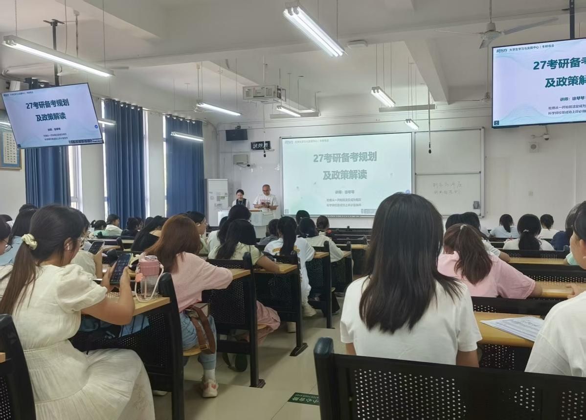 讲座过程中,徐老师结合当前考研形势与我校学子备考现状,强调了科学规划与高效复习的重要性,鼓励同学们以坚定的信念和务实的行动追逐考研梦想。同时也分享了考研前期的一系列筹备工作,例如通过自我评估精准锁定报考院校,以及如何系统收集备考资料、摸清备考 “规则”,为后续复习打下基础。