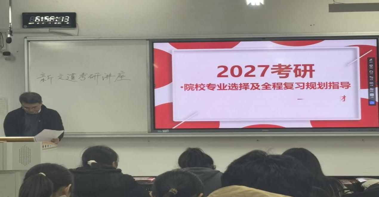 为帮助有考研意向的同学破除备考期的迷茫,明晰报考方向与复习节奏,12月12日与12月16日,经济管理与法学院联合新文道在逸夫楼成功举办考研指导讲座。本次活动作为创新创业类专场分享,为同学们提供专业的指导,同学们积极回应,现场参与氛围热烈。