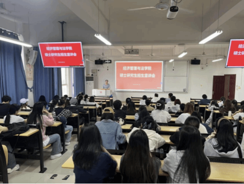 为吸引优秀生源,助力学生深造发展,经济管理与法学院于2025年10月14日下午3点面向本院学生举办了2026年硕士研究生招生宣讲会。活动吸引了近90名同学踊跃参加,现场气氛热烈。
